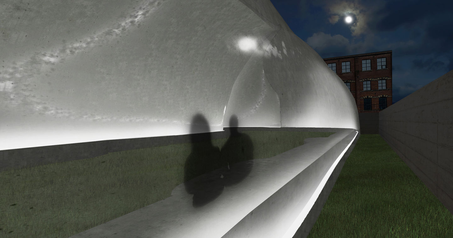 Made of translucent concrete, Illume is a pavilion which captures and emits light. As the day goes by, the slit between the two walls allows pure natural sunlight to pierce through - shining on it like the oculus at the infamous Pantheon in Rome - and washes one side of the pavilion with its luminescence. At night, it creates a halo effect with its luminescent light emitting from a single light source.